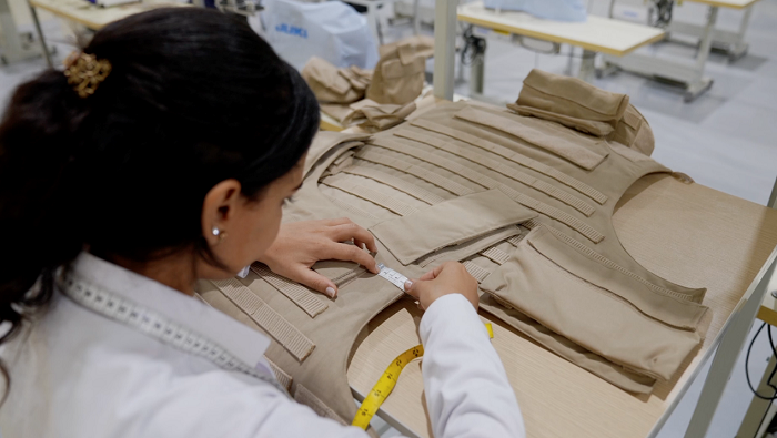 The factory is located on an area of 3500 square meters and produces combat helmets with an annual production capacity of approximately 15,000 pieces. It also manufactures protective vests with varying levels of protection according to demand and has the capability to implement different designs with an annual production capacity of around 60,000 pieces, using the latest technologies and materials to achieve the required quality.